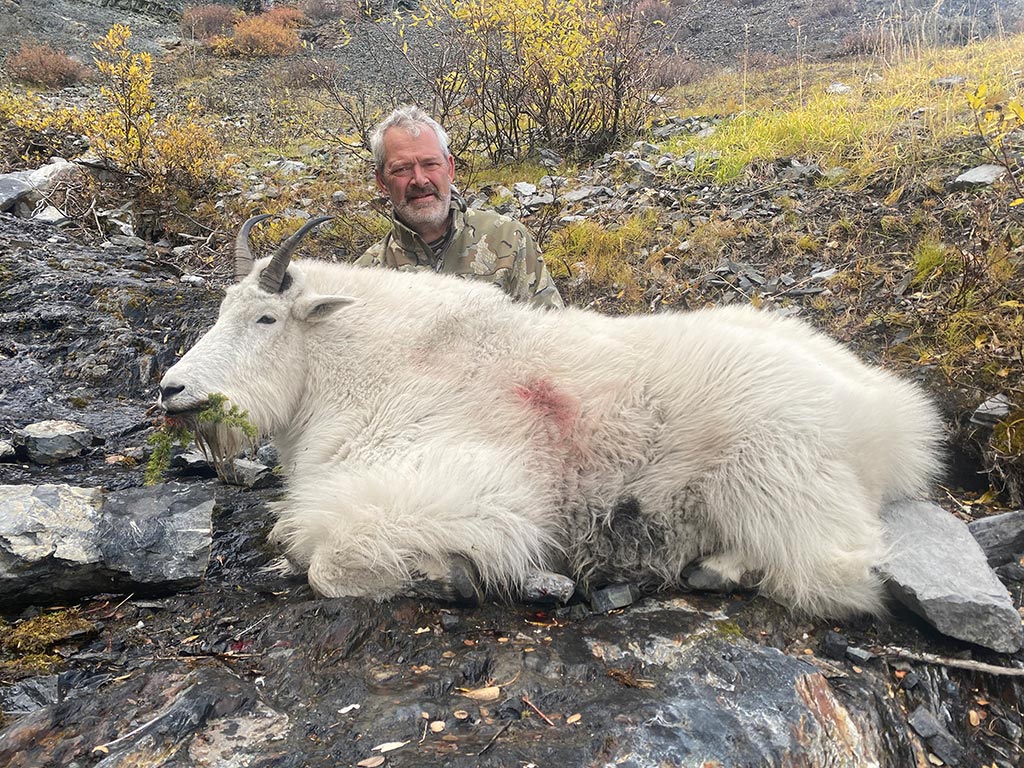 Due to our far north location, the goat’s winter hair comes in relatively early, providing a beautiful full-body mount. We use horses as much as we can to access areas and find goats, then go up on foot after them. We do this hunt based out of cabins, or spike tents. Often, but not always, it is necessary to spike out after goats, climbing into valleys that hold a good population to get you closer for the next day so it’s not such a big climb all in one day.