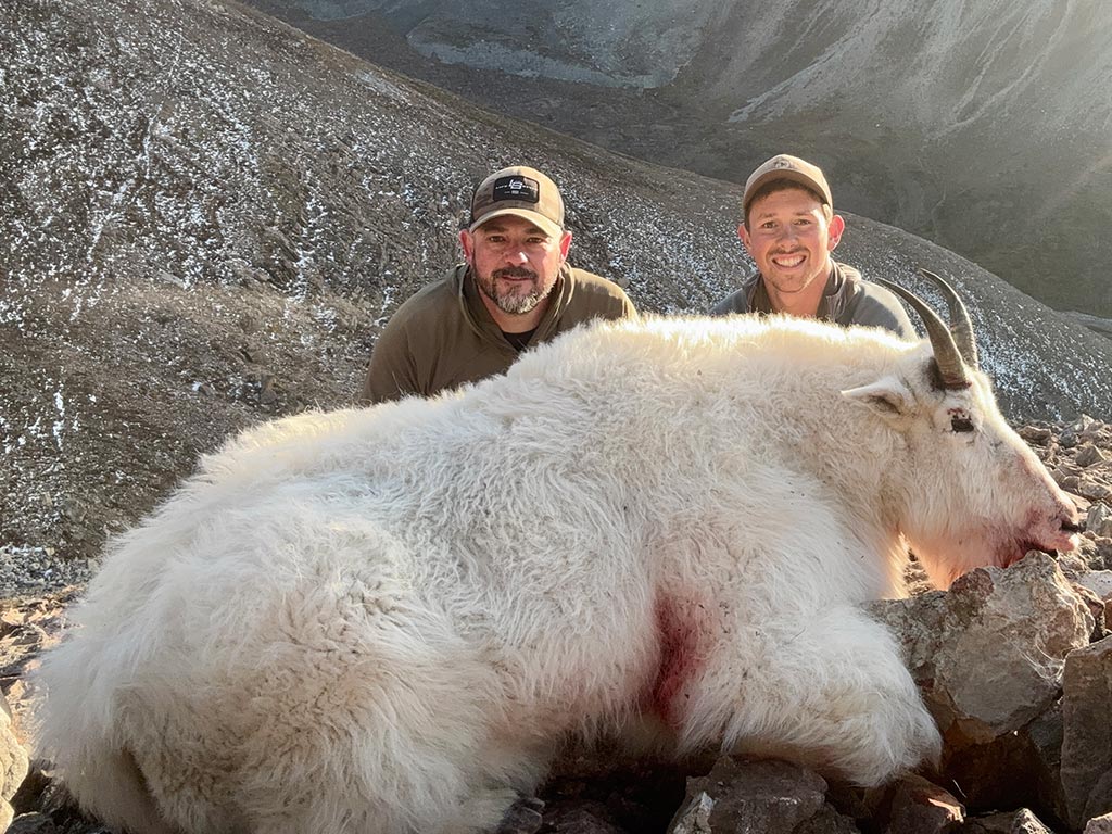 There is an abundance of mountain goats in the area. An average goat is usually between 8-9.5″ with goats over 10 inches harvested every year. We only take billies and have had great success with rifle and bow.